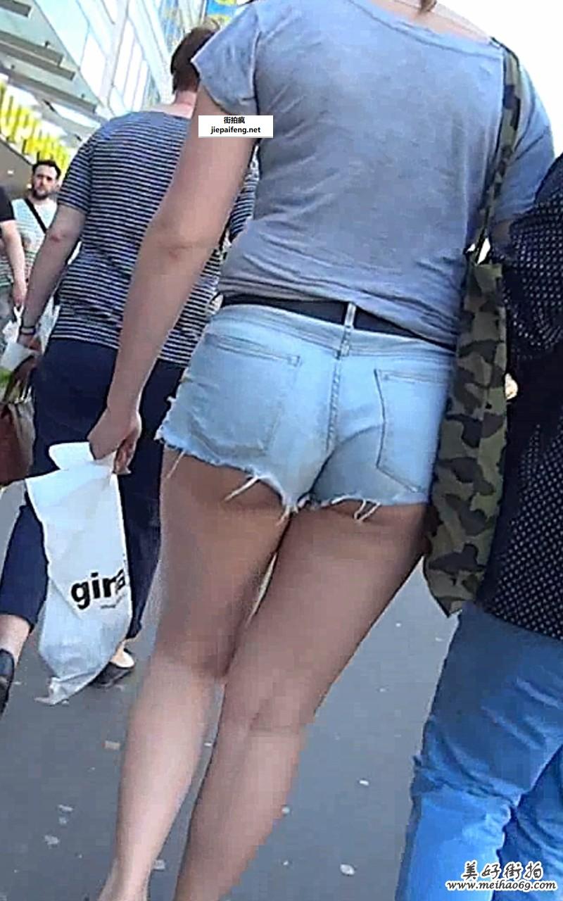 街拍牛仔热裤极品圆臀可爱洋妞[MP4/169M]