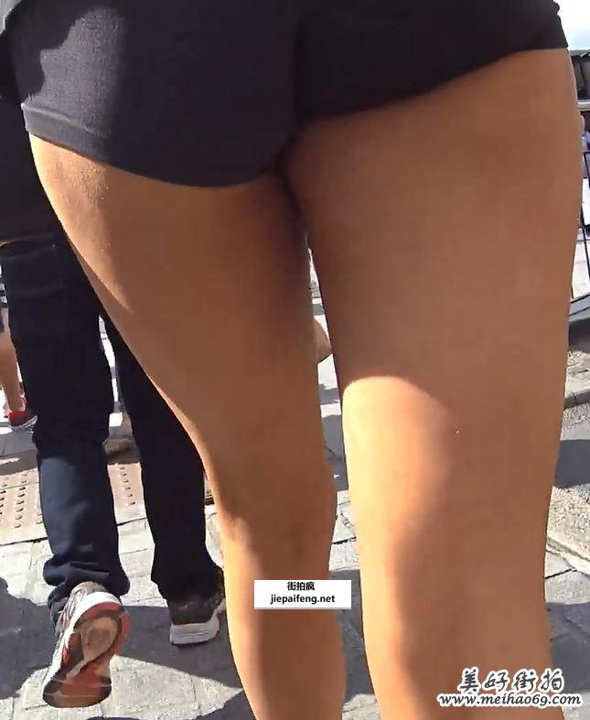 街拍漂亮金发时尚金发洋妞黑色紧绷短裤性感圆臀[MP4/576M]