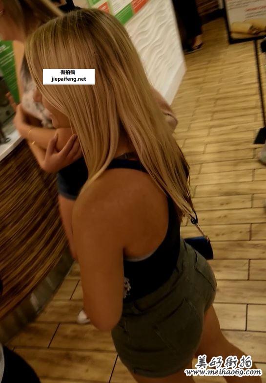 购物中心露背金发牛仔短裤洋妞性感紧臀[MP4/75M]