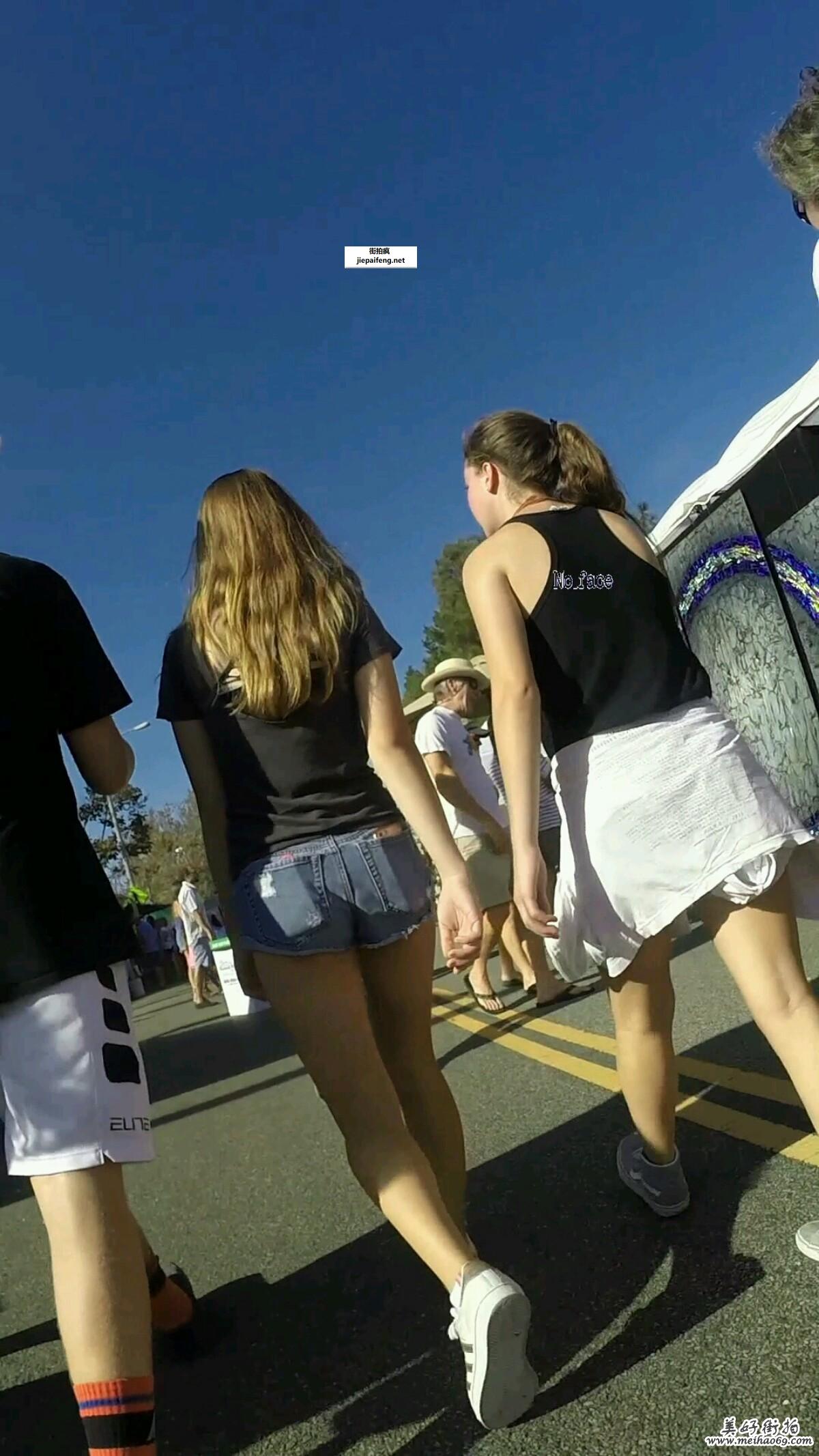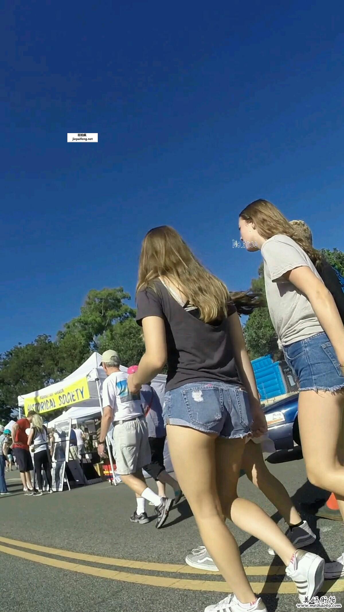 街拍牛仔热裤金发洋妞性感白腿圆臀[MP4/145M]