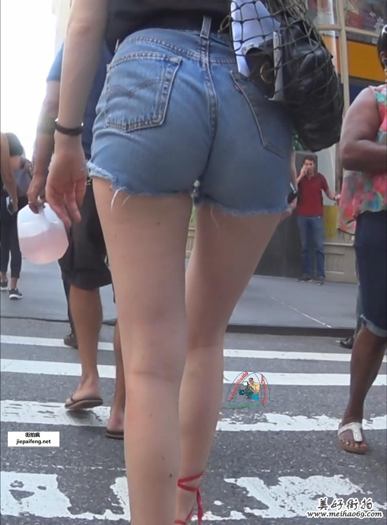 街拍三个牛仔热裤极品圆润翘臀高挑洋妞[MP4/361M]