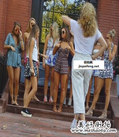 街拍穿着时尚性感美腿金发洋妞[MP4/391M]