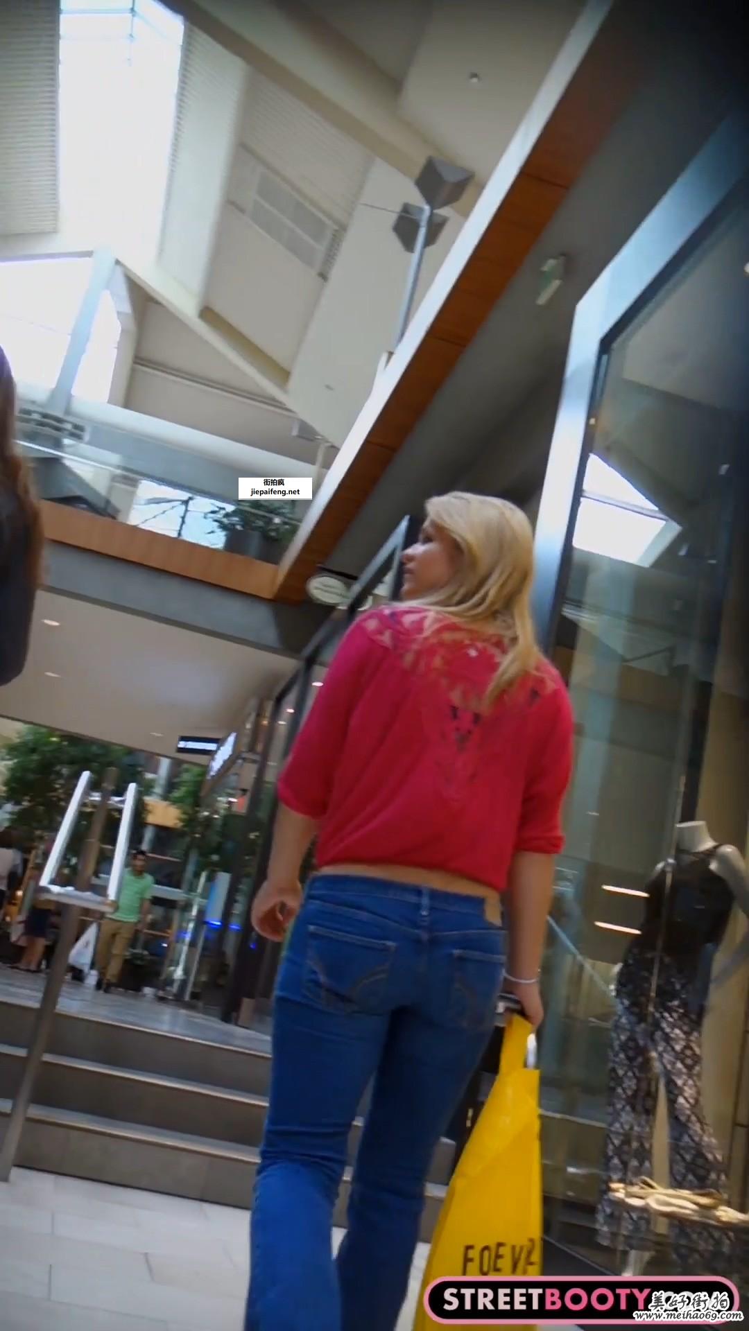 牛仔热裤和蓝色紧身牛仔裤金发洋妞极品圆臀[MP4/102M]