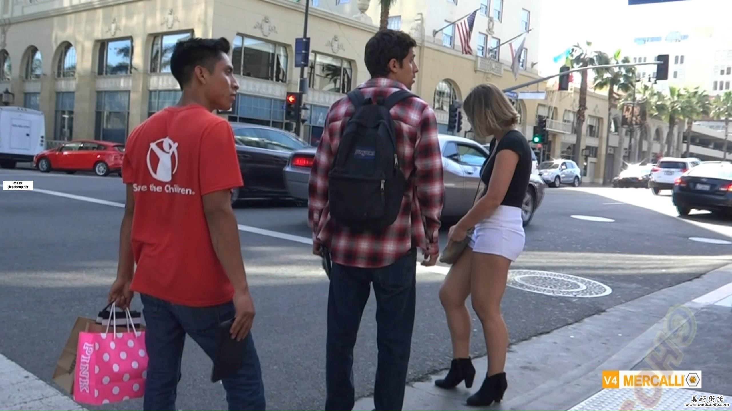 街拍白色紧身短裤性感翘臀金发洋妞[MP4/891M]