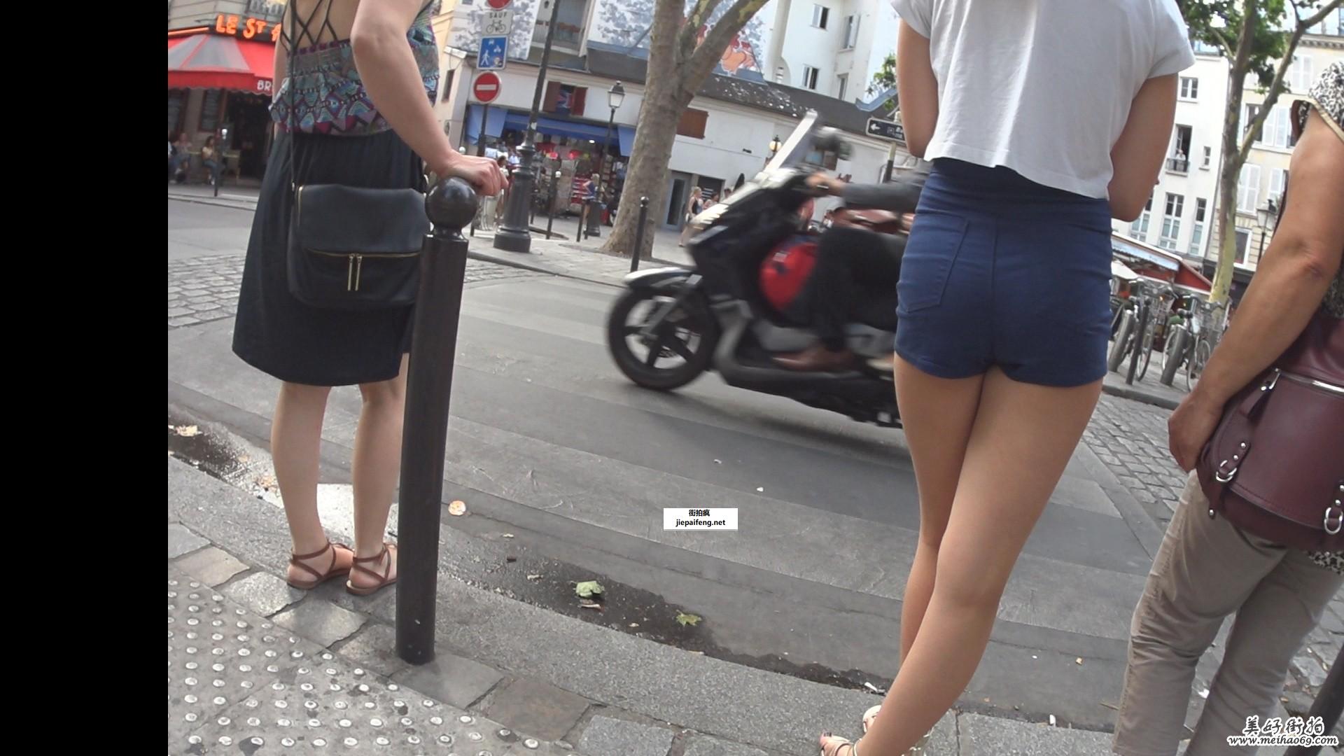 巴黎长腿翘臀美眉紧身蓝色短裤[MP4/617M]