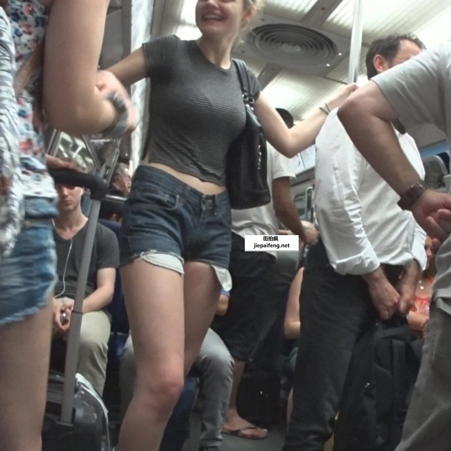 巴黎地铁牛仔短裤高挑美眉[MP4/598M]