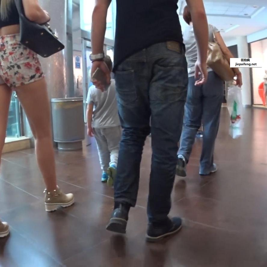 洋妞紧绷花短裤,圆润翘臀,性感美腿[MP4/145M]