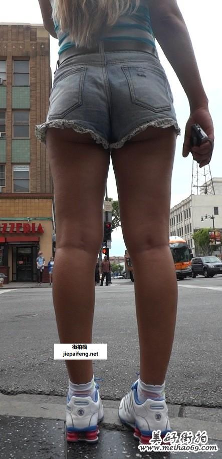 街拍牛仔热裤性感翘臀金发美眉[MP4/832M]