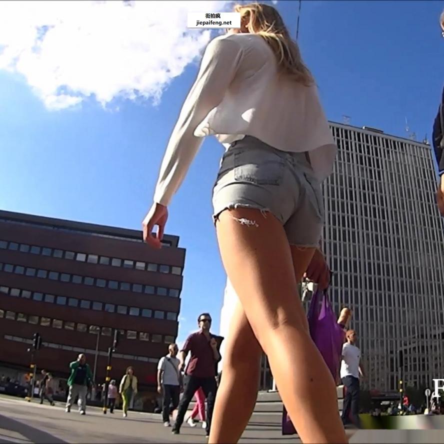 街拍两个牛仔热裤丰满圆润翘臀辣妹[MP4/748M]