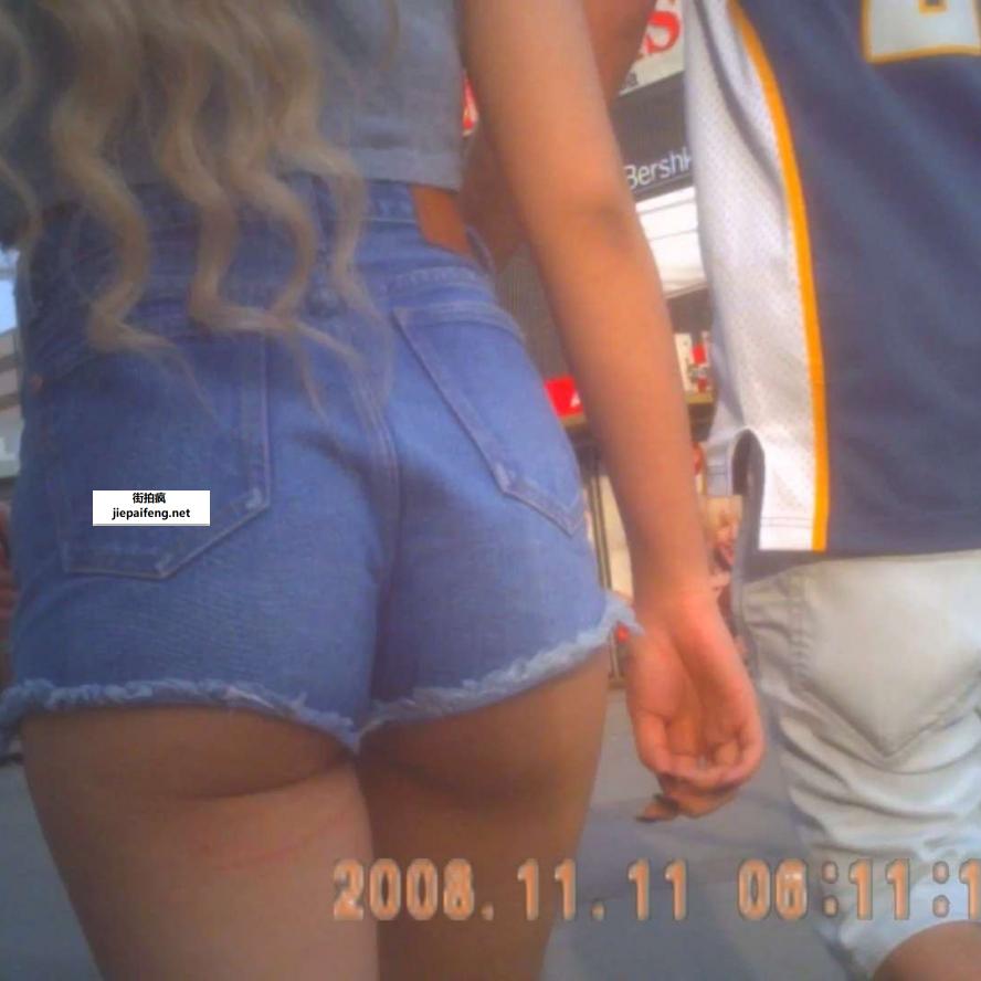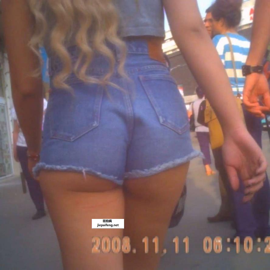 蓝色牛仔热裤圆润翘臀性感美女[MP4/501M]