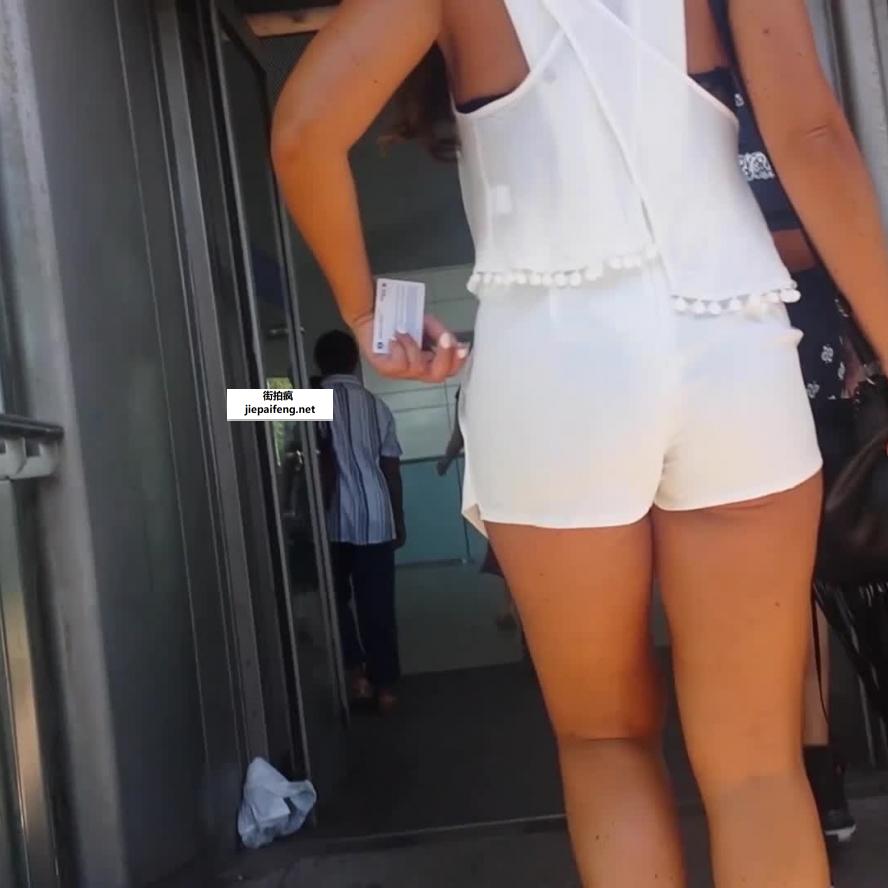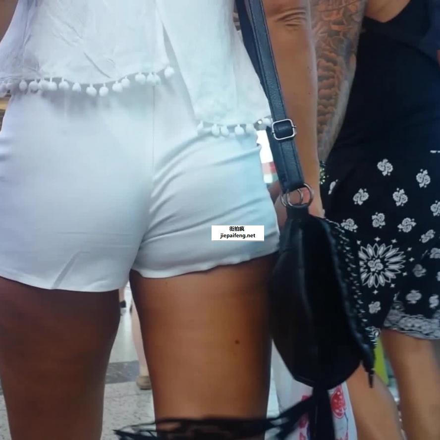 街拍白色紧身热裤丰满紧绷圆润翘臀外国美眉[MP4/164M]