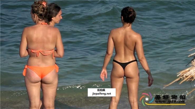 海边黑色丁字比基尼性感身材圆臀美眉[MP4/437M]