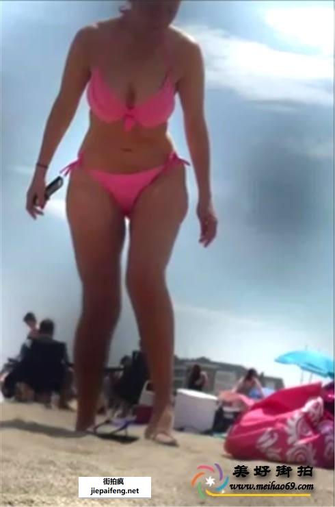 沙滩近拍粉色比基尼大胸丰臀金发少妇[MP4/134M]
