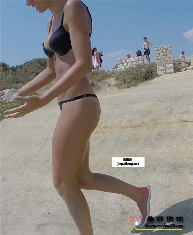 沙滩近拍黑色丁字比基尼长腿圆臀洋妞[MP4/333M]