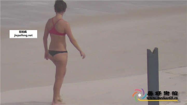 海滩拍摄黑色比基尼洋妞圆润翘臀[MP4/195M]