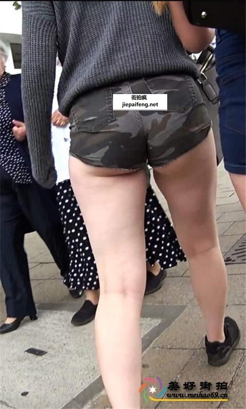 街拍迷彩热裤洋妞白腿圆臀[MP4/371M]