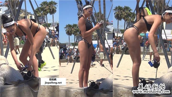 沙滩玩吊环的黑色比基尼极品圆润翘臀洋妞[MOV/949M]