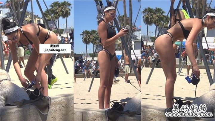 沙滩玩吊环的黑色比基尼极品圆润翘臀洋妞[MOV/949M]