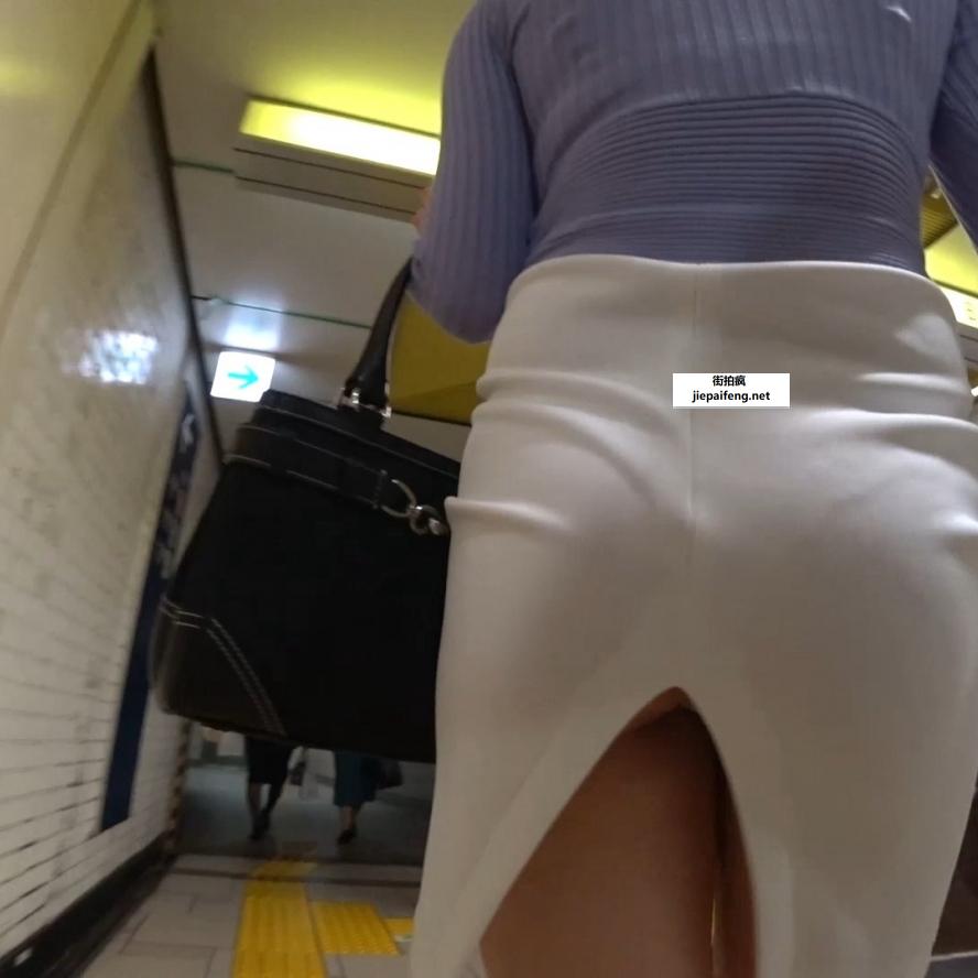 [短裙] 白色开叉包屯白裙OL性感细腿丰屯[1.39G]