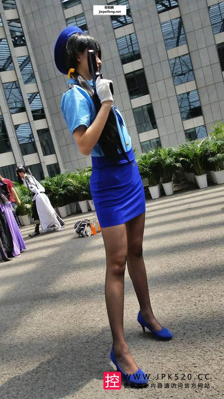 [展会] 蓝色制服街拍黑丝cosplay美女[754M]