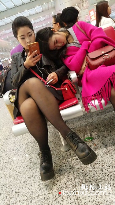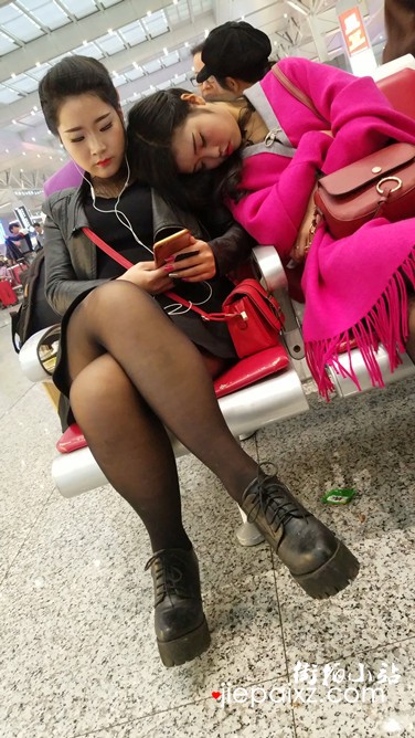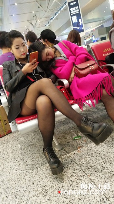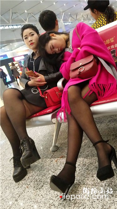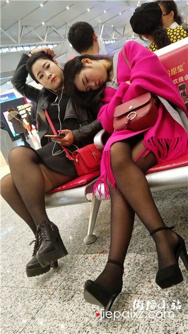 4k超清,候车室内拍摄黑丝长腿姐妹淘