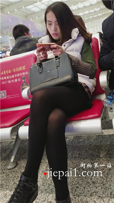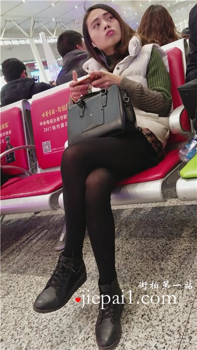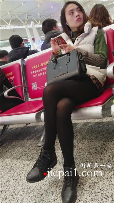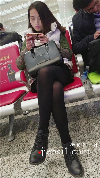 4k-候车厅黑丝美腿女神,样子有点凶。