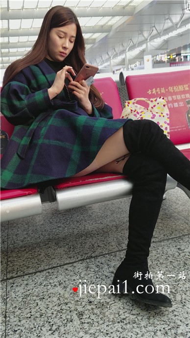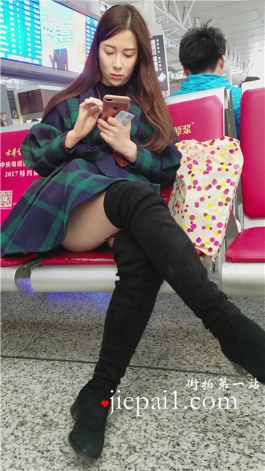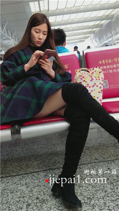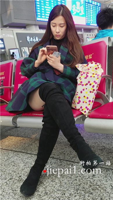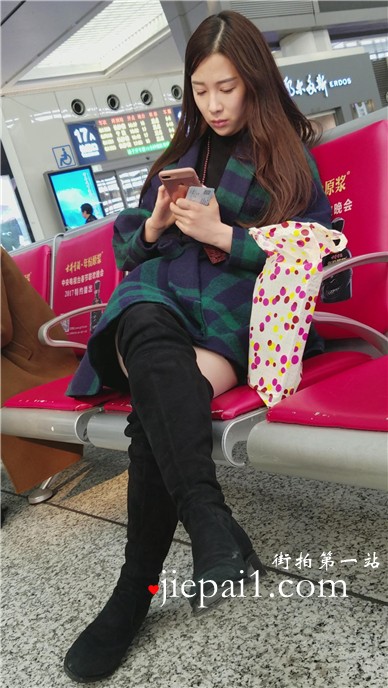 4k-高铁站候车室拍摄美腿肉丝袜长筒靴美女姐姐。