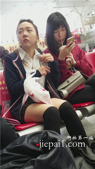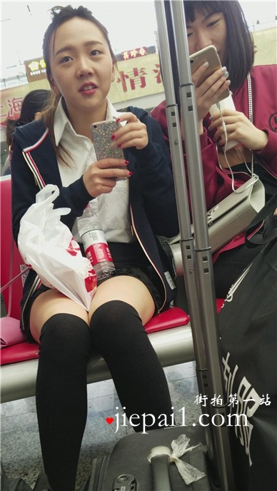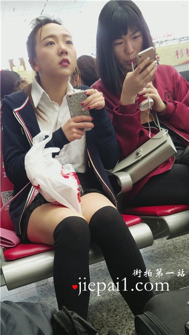 4k-高铁站候车室拍摄长筒黑丝袜超呆萌清新妹子。