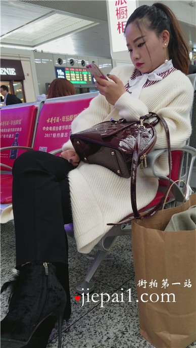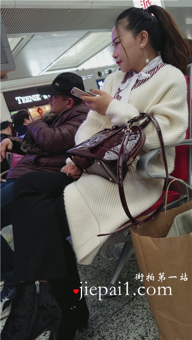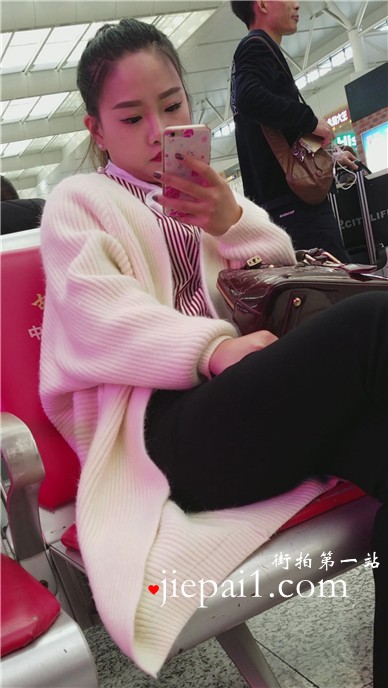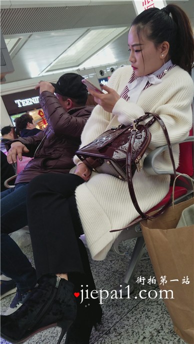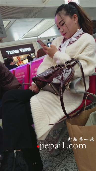4k-车站候车室拍摄长腿黑丝打底裤漂亮美女。