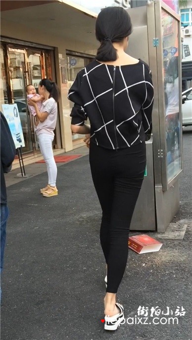 街拍性感紧身裤高跟鞋极品美少妇