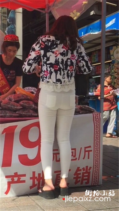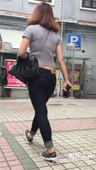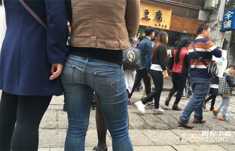 街拍小清新宽臀紧身蓝牛美颜小姐姐