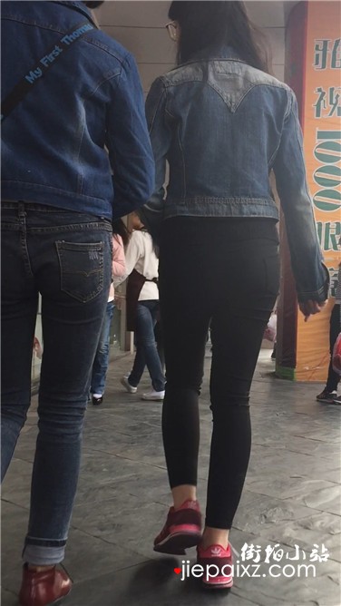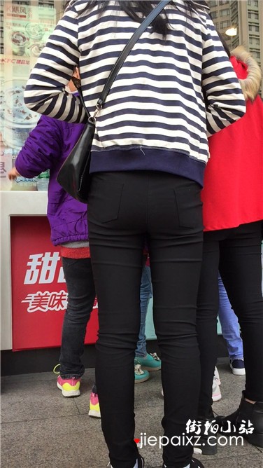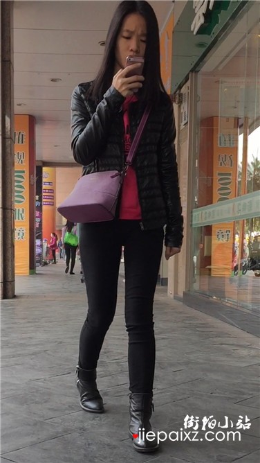 街拍苹果臀紧身黑裤妹子