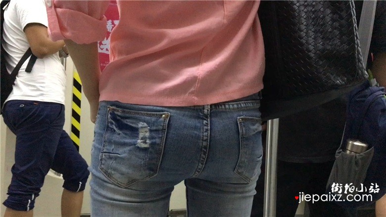 粉色T恤衫紧身蓝牛宽臀美眉