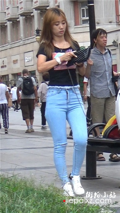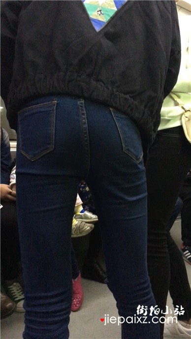 超紧身蓝色牛仔裤美眉,紧到没朋友