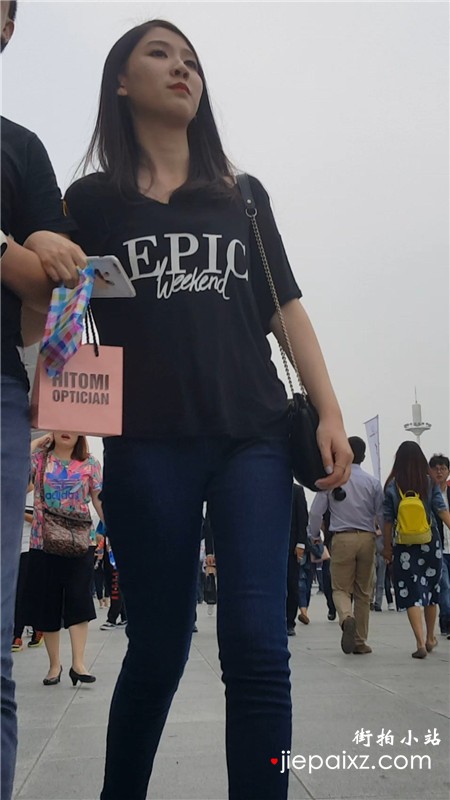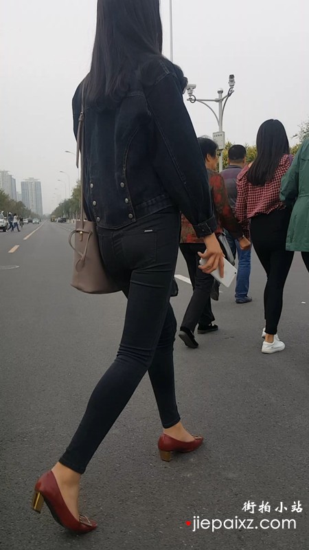 街拍超紧身蓝色牛仔裤美眉
