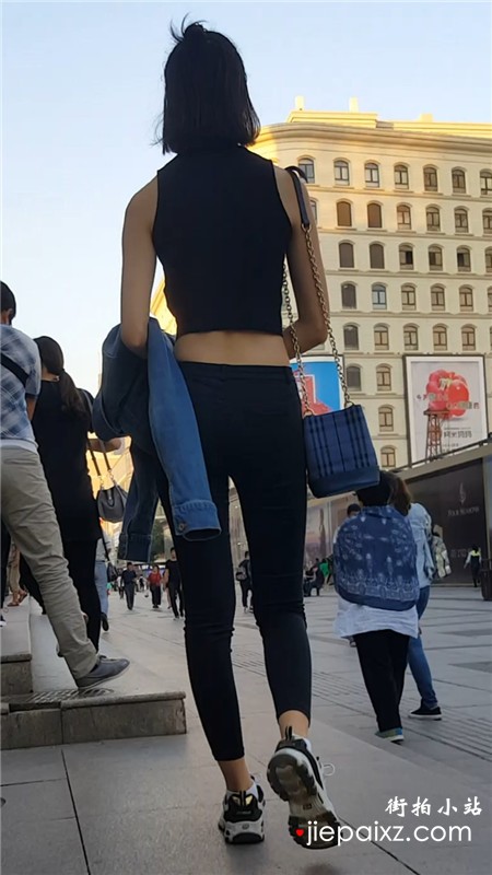 街拍超紧弹力裤黑色系美眉