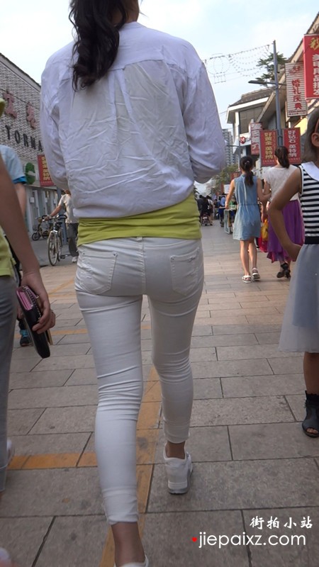 跟拍极品好身材紧身白裤美女