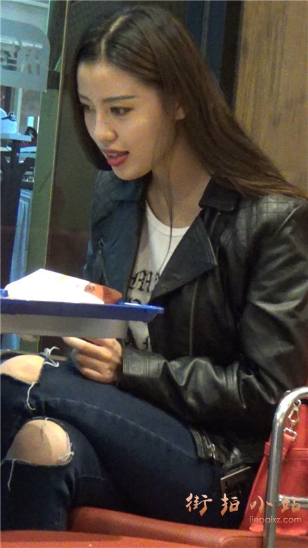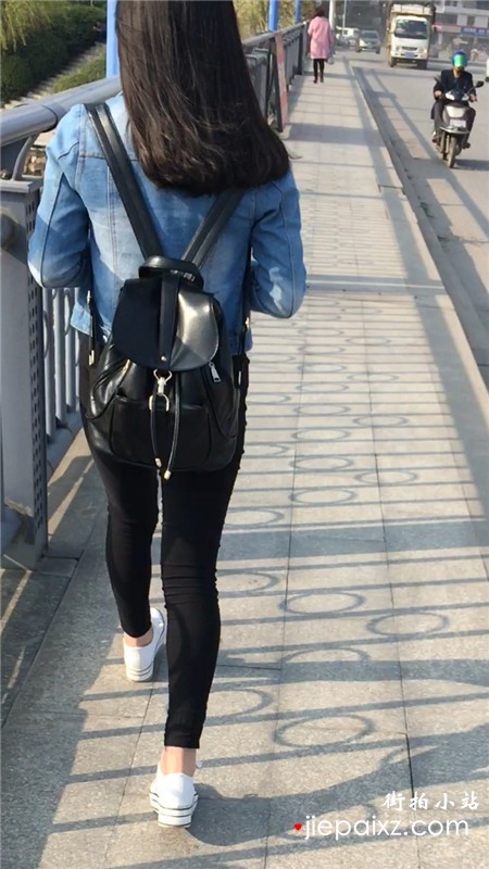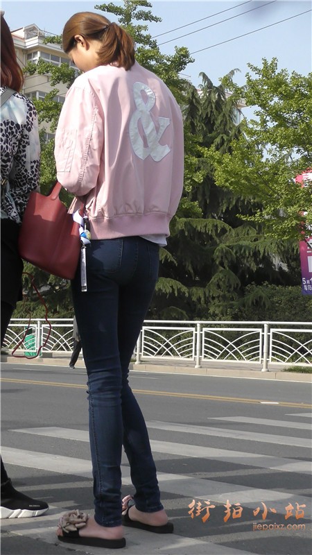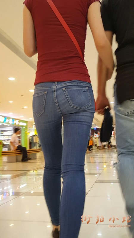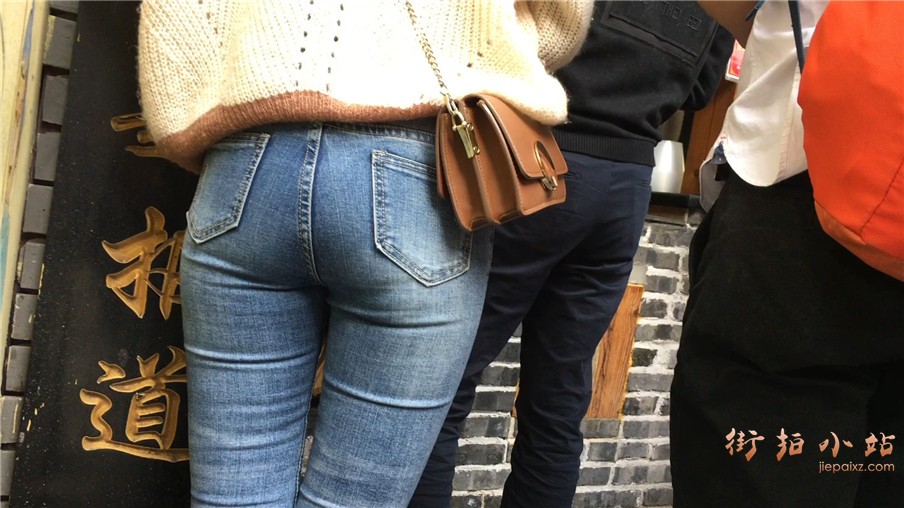 超紧绷蓝色牛仔裤丰腴美臀街拍美女