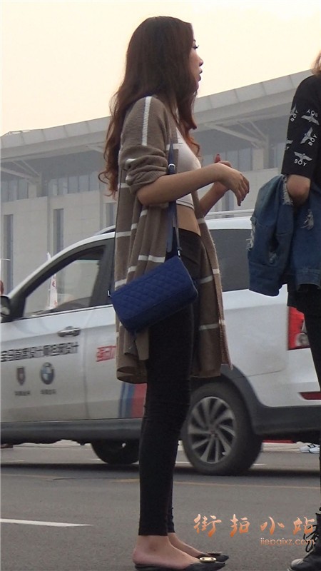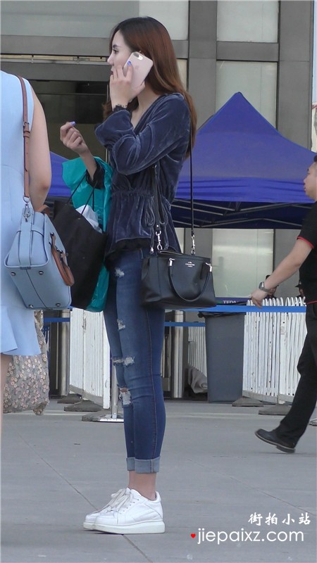街拍紧身蓝色牛仔裤气质漂亮美女