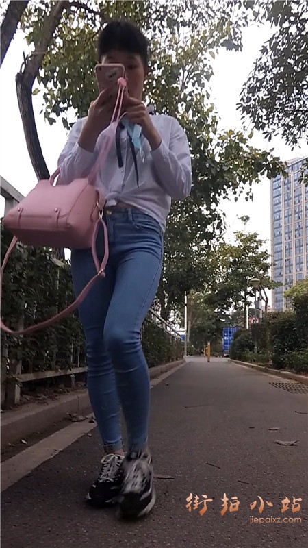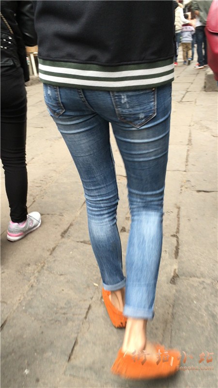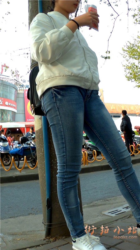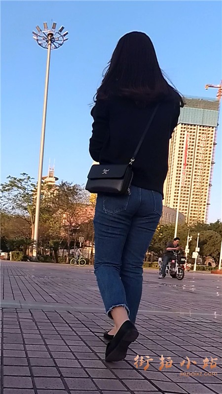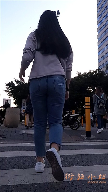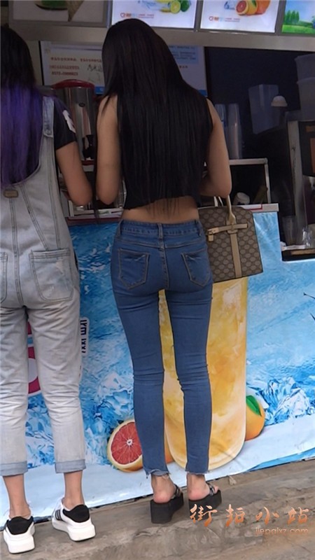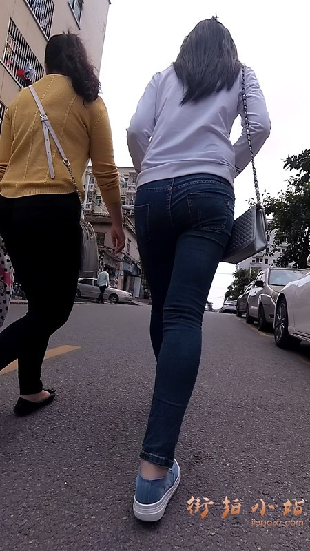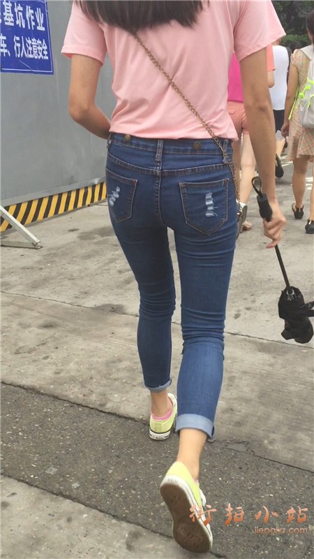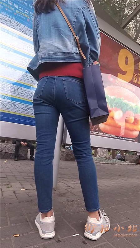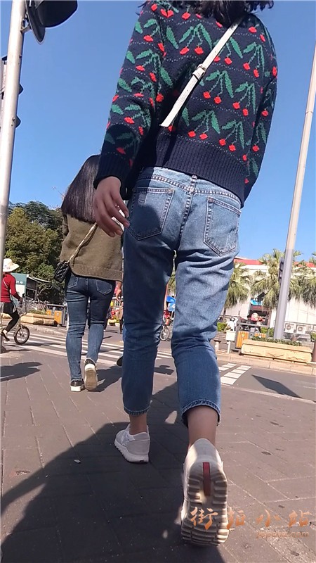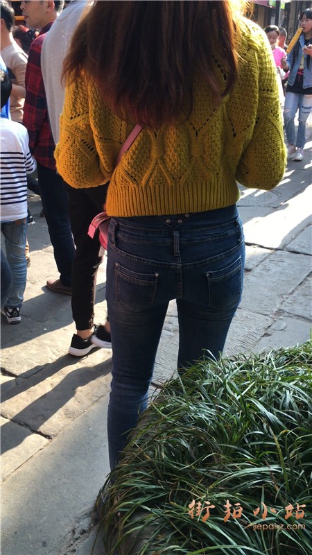 4k-街拍紧身蓝牛黄色毛衣小美女