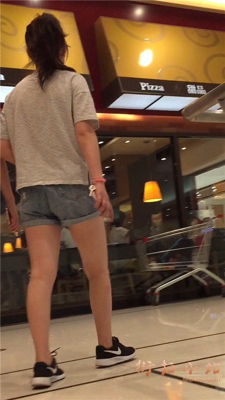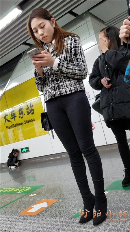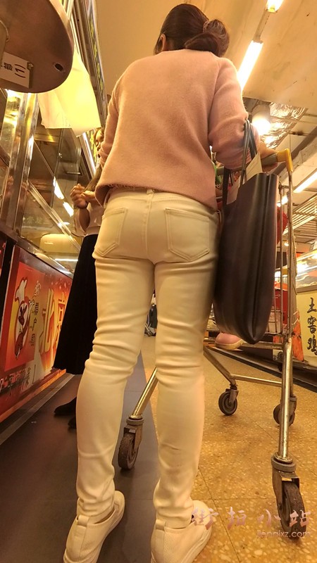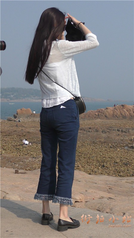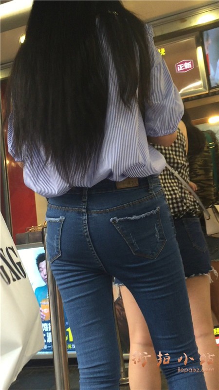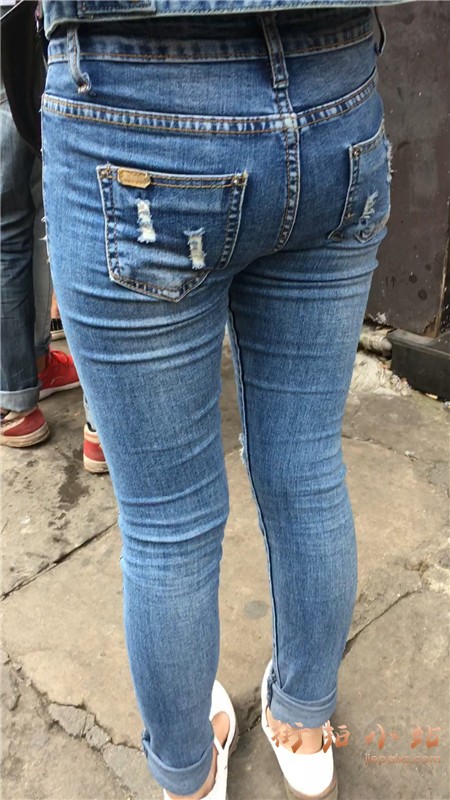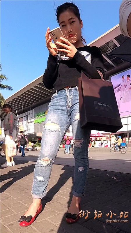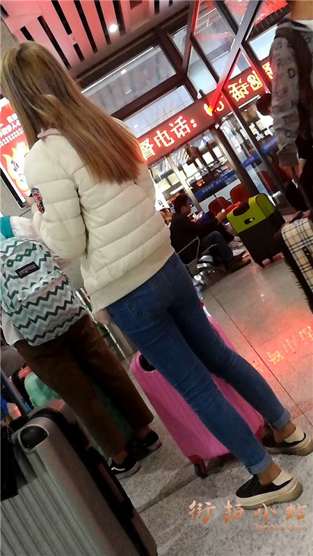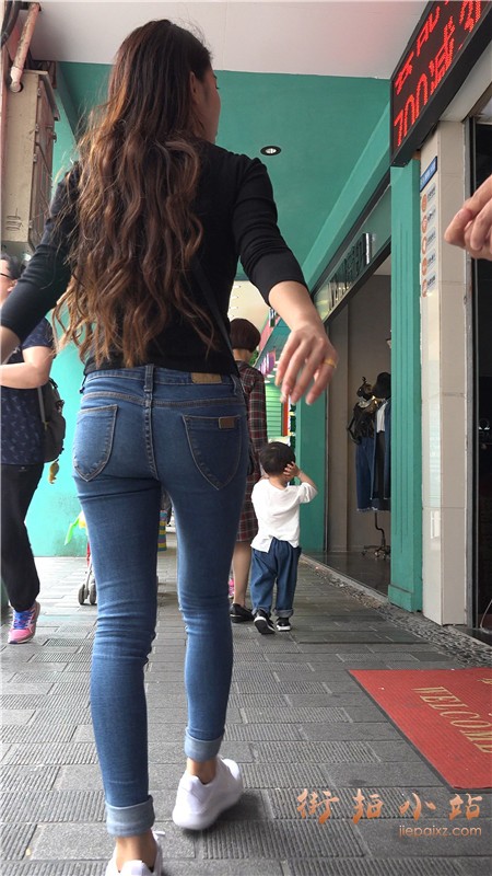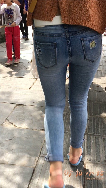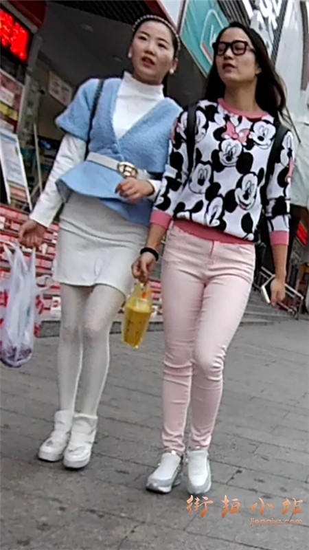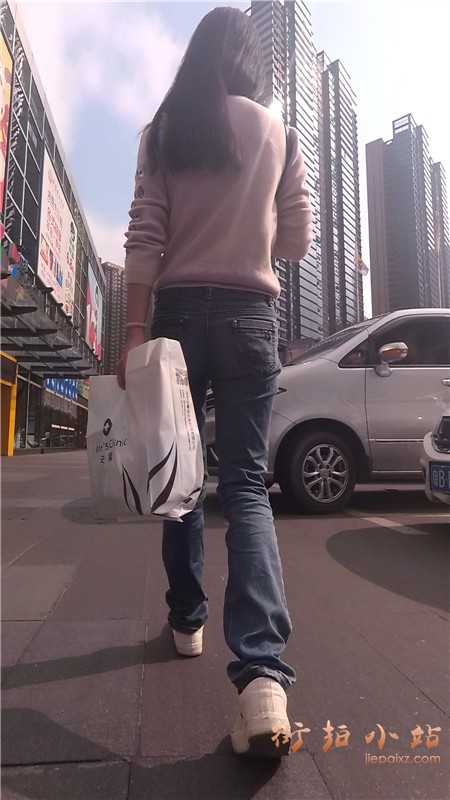 4k-街拍紧身蓝牛黄色毛衣小美女