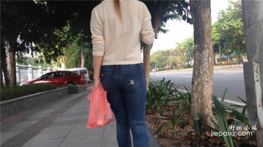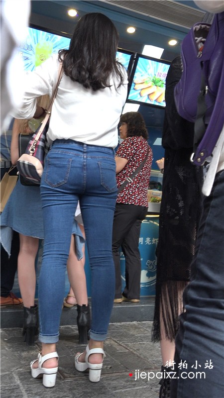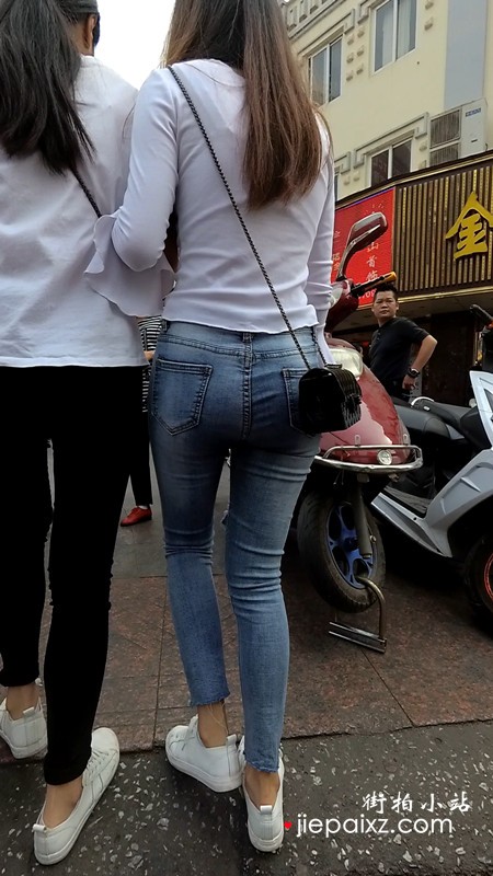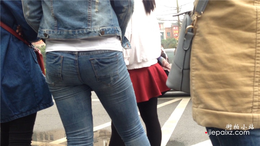 极品紧身牛仔裤街拍圆臀美眉