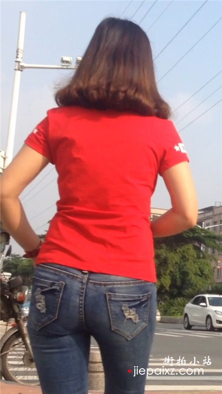 跟拍红T恤紧身牛仔裤圆臀美眉