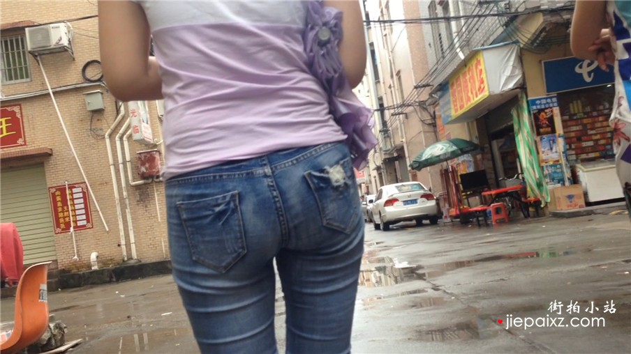 跟拍紧身蓝色牛仔裤T恤衫美臀少妇