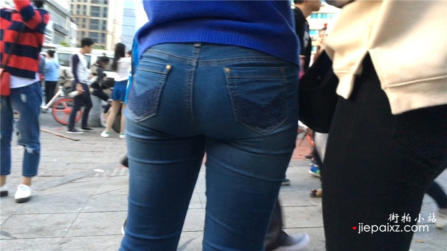 街拍紧身蓝牛美女姐姐