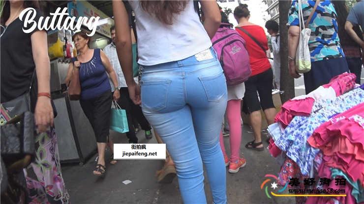 街头跟拍蓝色紧身牛仔裤洋妞饱满圆润翘臀[MP4/351M]