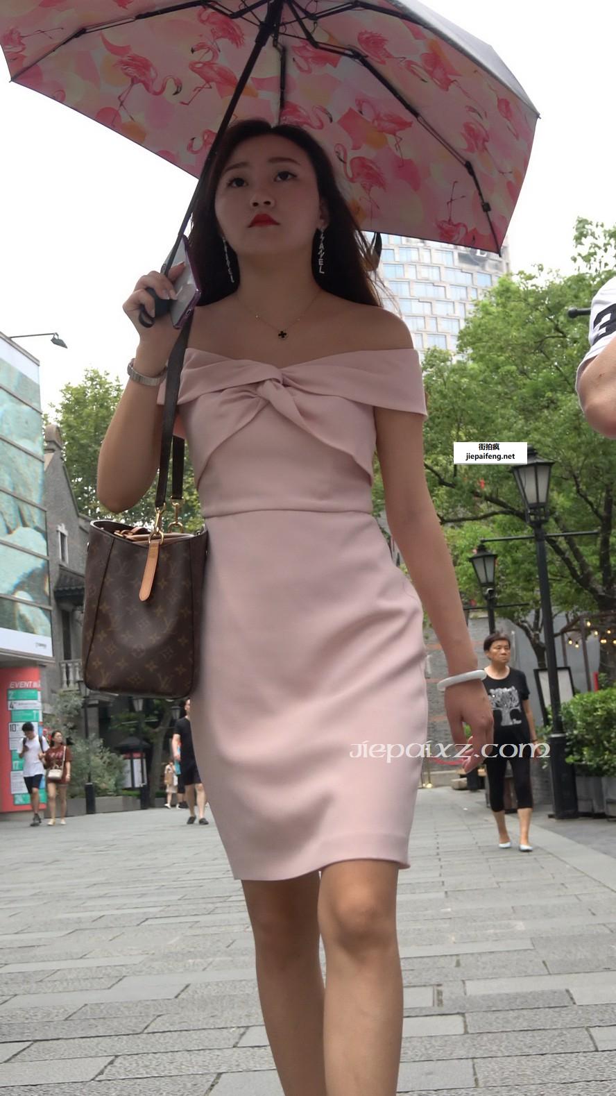 4K - 性感身材粉色连衣裙街拍高跟美女 [1.31 GB/MP4]