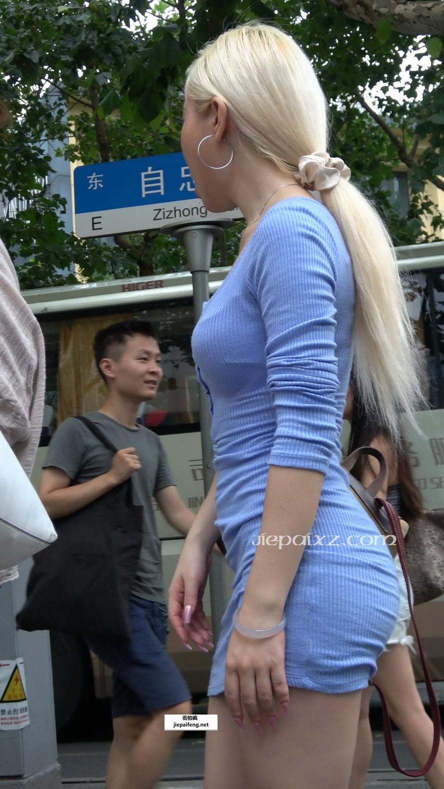 4K - 性感蓝色包臀裙街拍黄发妹子 [1.51 GB/MP4]