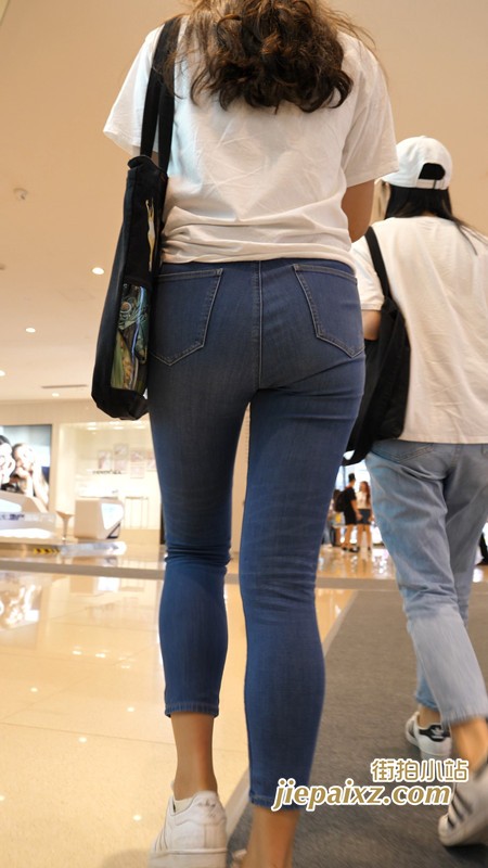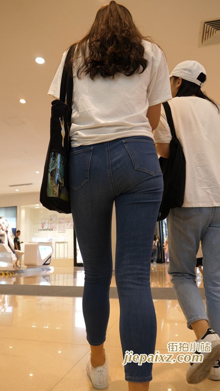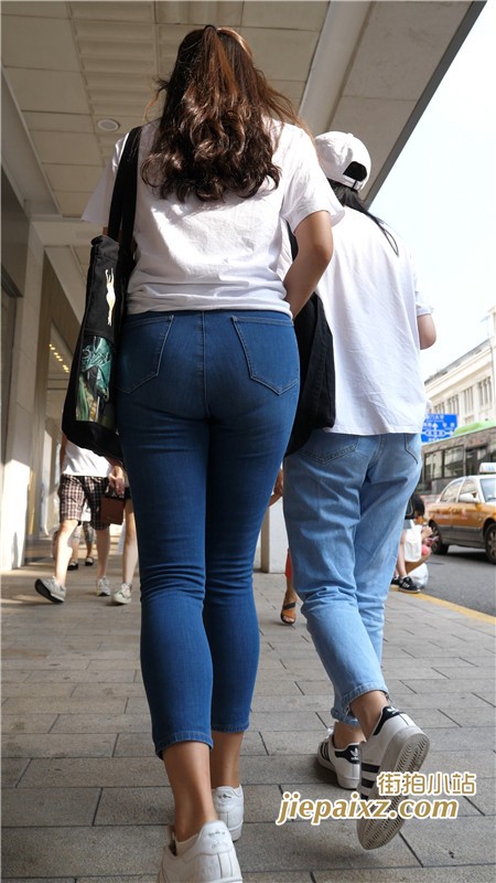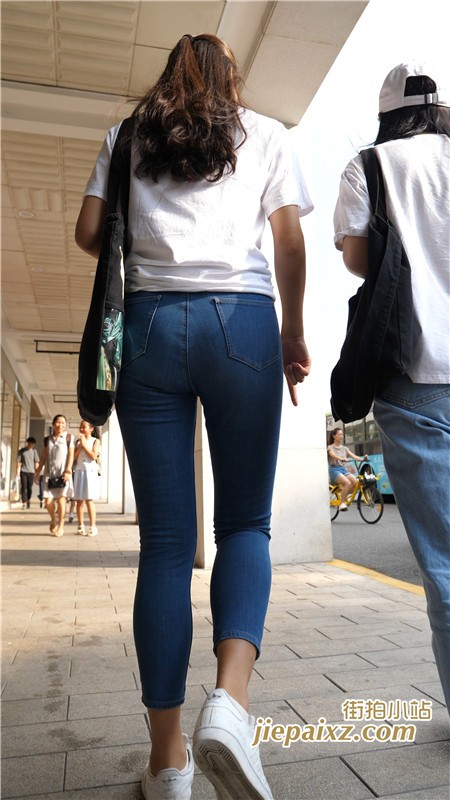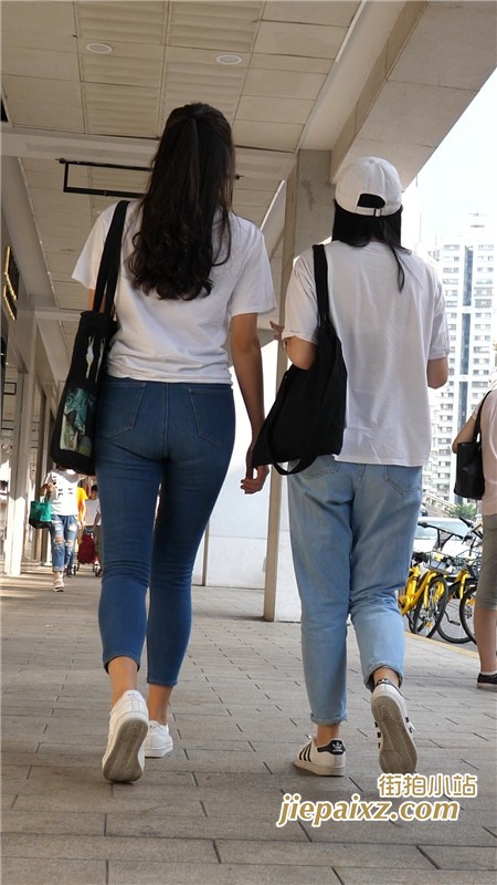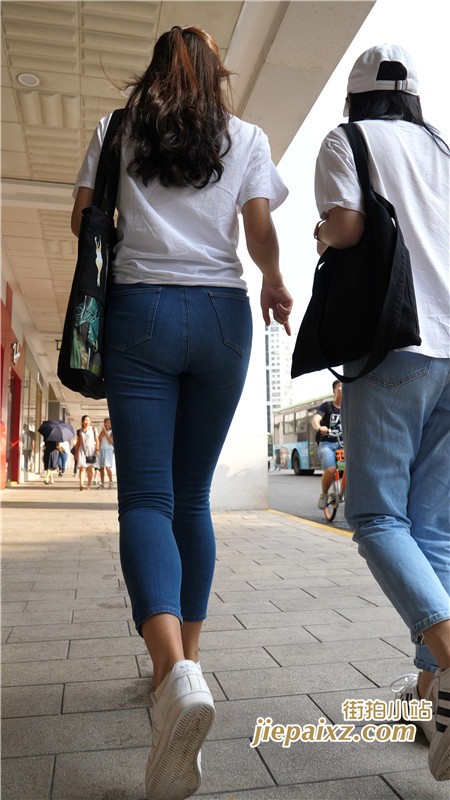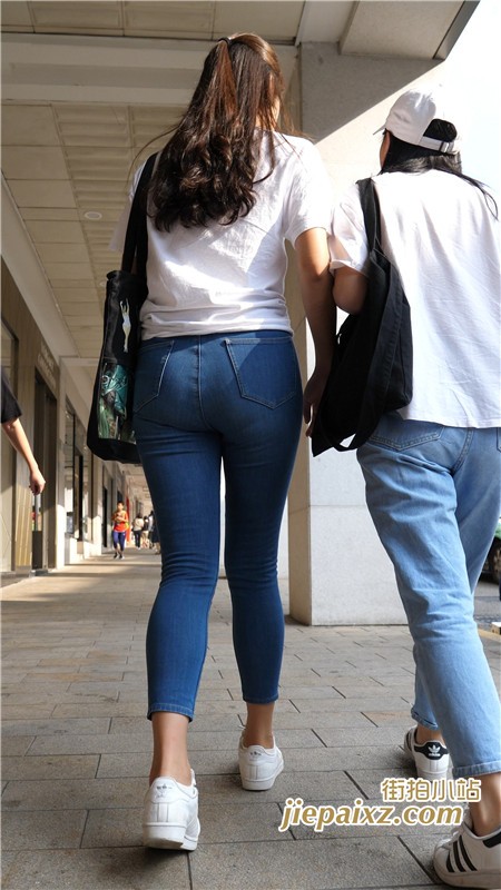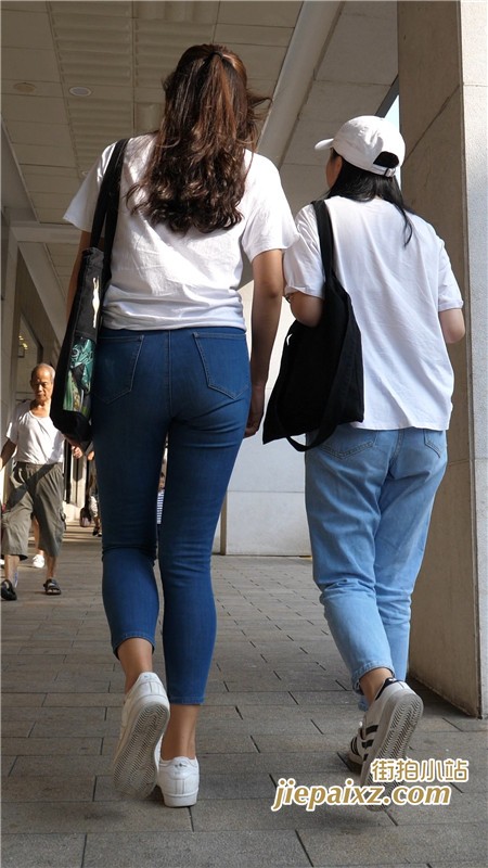 超紧身蓝牛白T恤美女闺蜜一枚