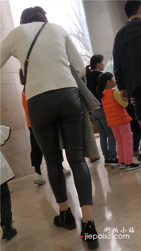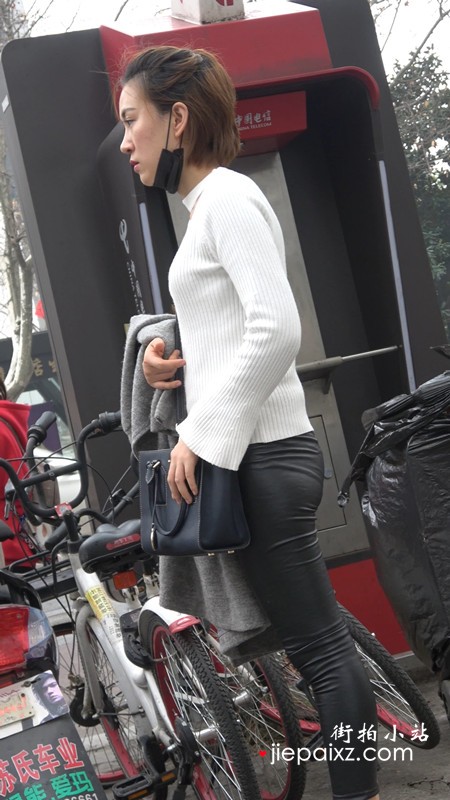 4K - 白色毛衣黑色紧身裤翘臀街拍美女辣妈
